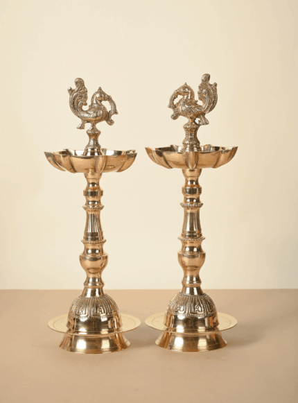 Brass Peacock Samai | Brass Param Mor Samai | Latern DIya for Puja | Pair of 2
