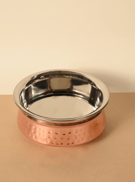 Copper Stainless Steel Handi | Hammered Serving Handi