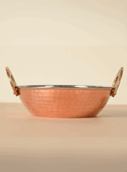 Copper Stainless Steel Kadhai | Hammered Serving Kadhai