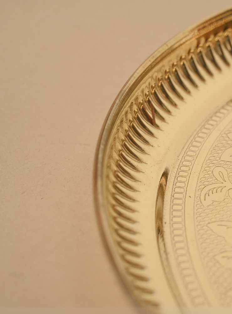 Brass China Plate | Brass Etching Plate | Designer Plate for Puja/Serving