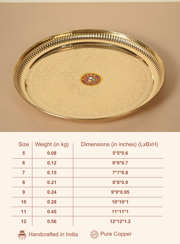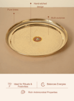 This handcrafted Brass China Plate features intricate etching and a graceful tapered shape, making it ideal for both pooja rituals and serving purposes. With its elegant design and multipurpose use, it’s a versatile addition to any traditional setup, available in multiple sizes.