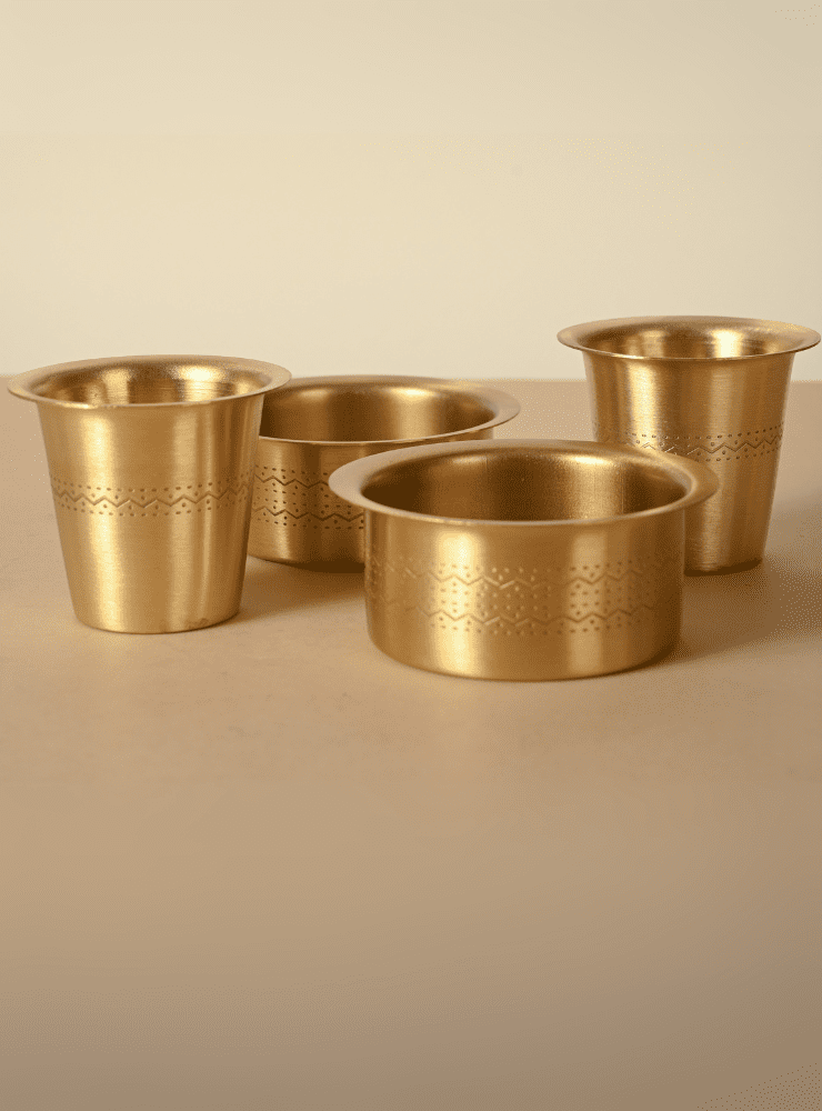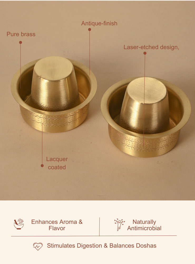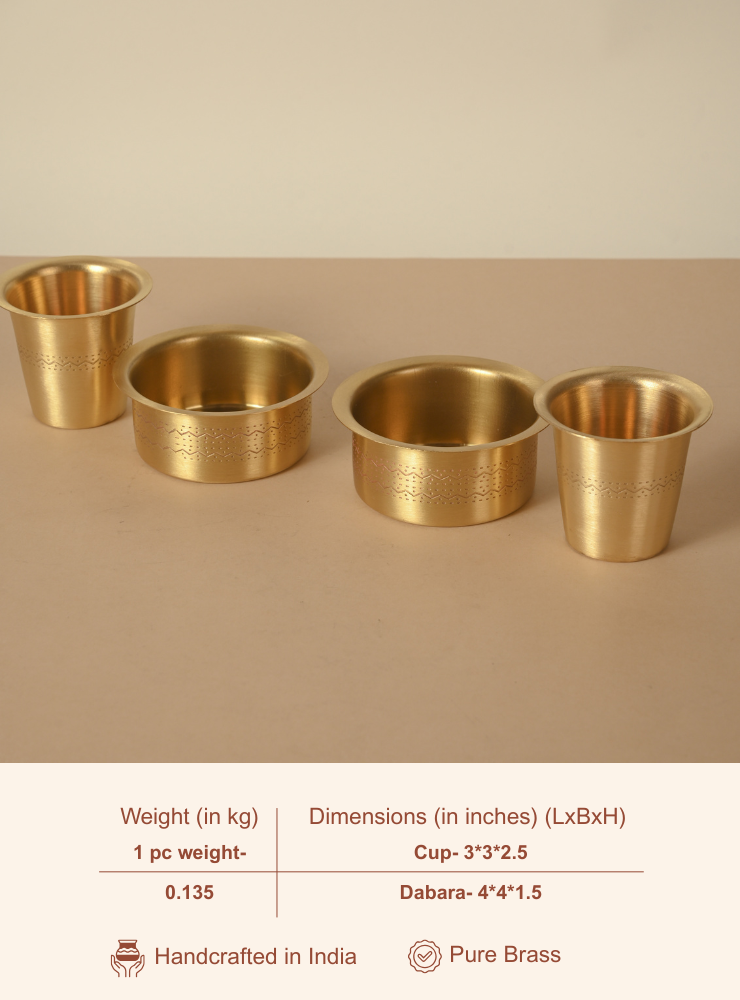 Enhance your South Indian coffee experience with Pitaka’s Brass Coffee Dabara Set, featuring two beautifully handcrafted dabara pieces adorned with intricate etching work. Made from premium brass, these dabara sets combine heritage design with durable craftsmanship, making your coffee ritual both authentic and stylish.
