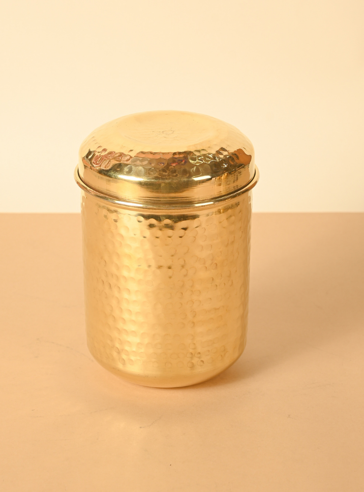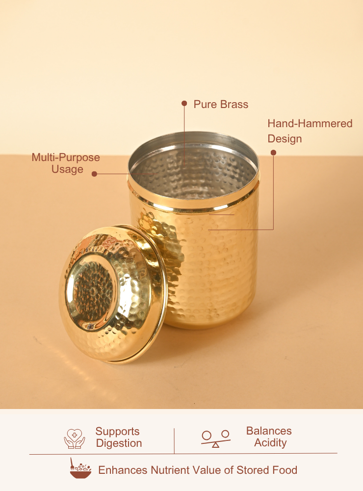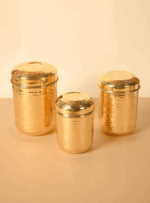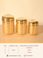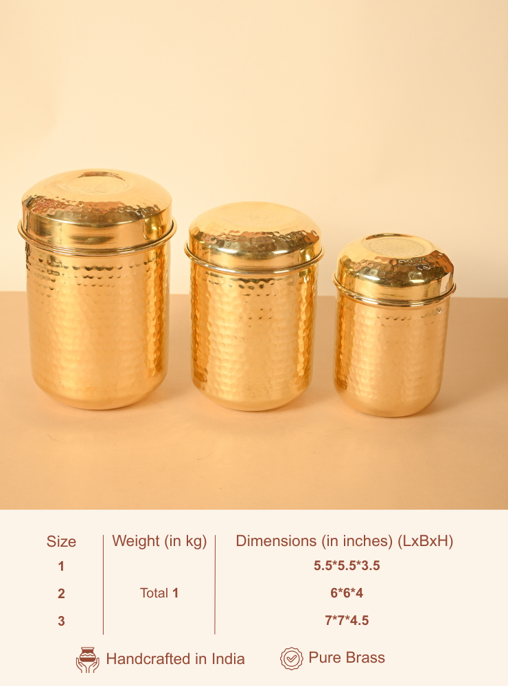 These airtight brass dabbas preserve the freshness, aroma, and flavor of your ingredients, while naturally resisting moisture and bacteria. The sturdy lids ensure a secure seal, making them perfect for daily use or special occasions.