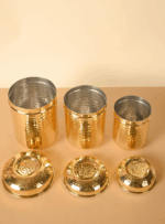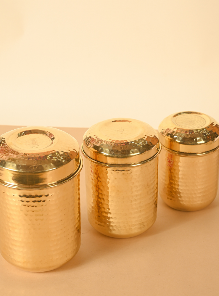 Brass Container Set of 3 | Tea, Sugar, Coffee Jar | Hammered Brass Dabba