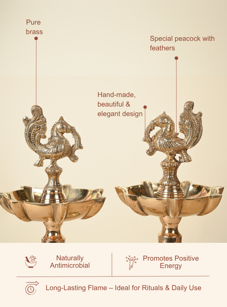 Durable and visually stunning, these peacock diyas bring an aura of tradition and sophistication to your poojas and celebrations.