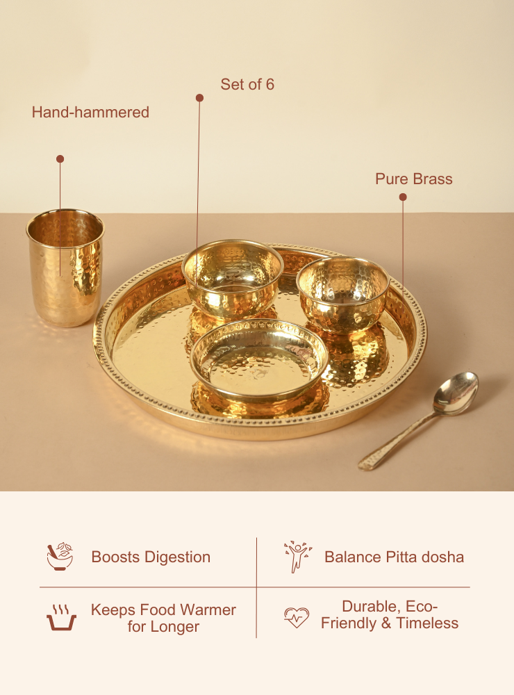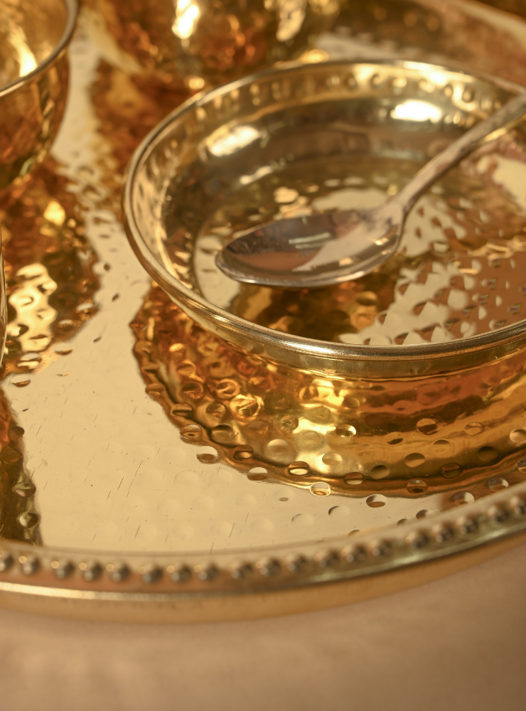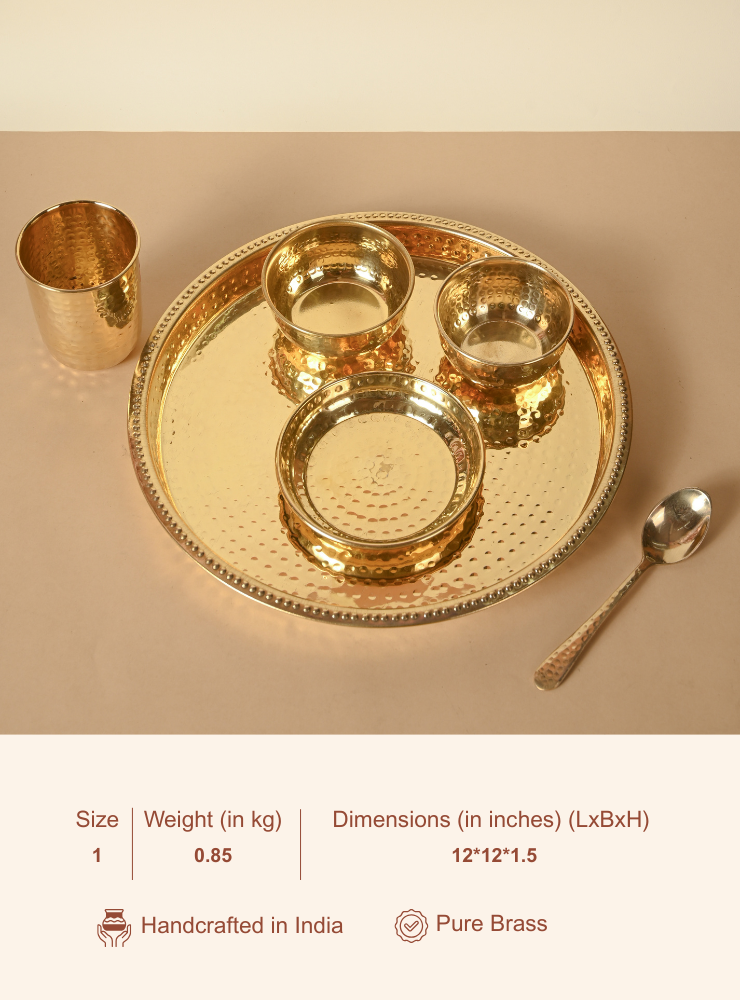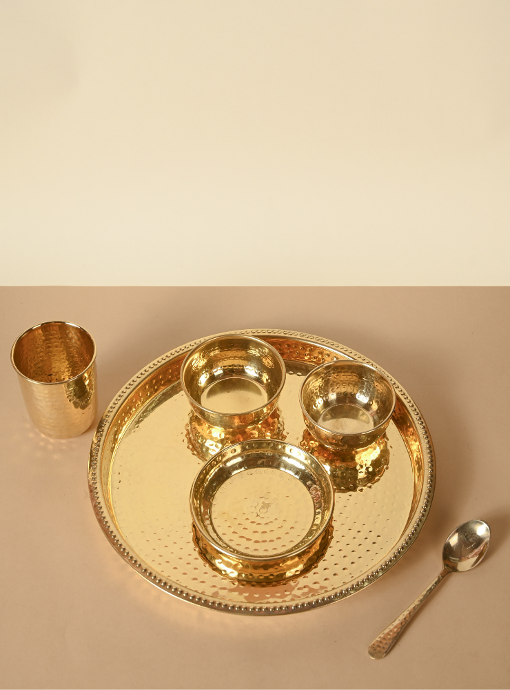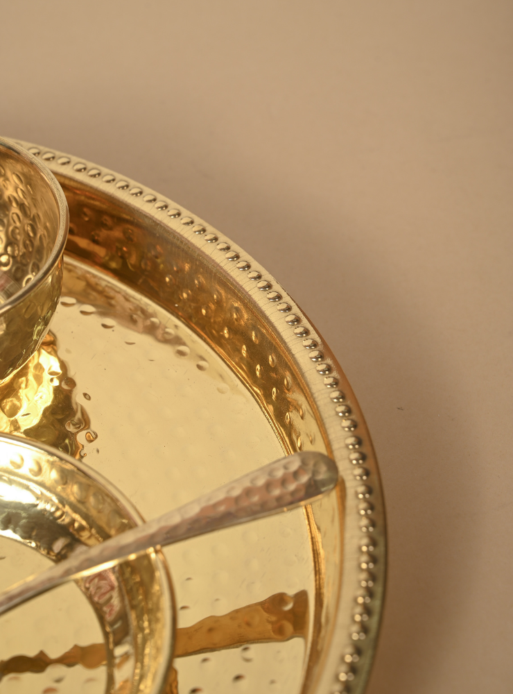 Brass Hammered Thali Set | Thali set of 6 pieces