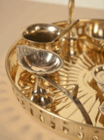 Brass Pearl Thali Set | | 1 plate 3 bowls 1 dessert plate 1 glass 1 spoon