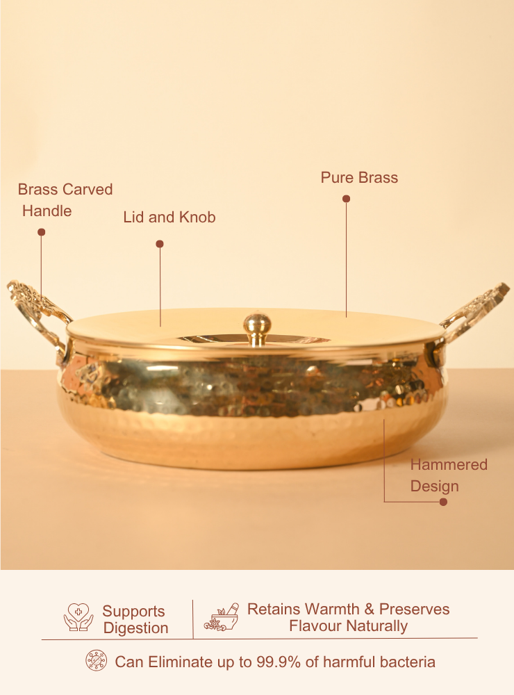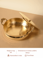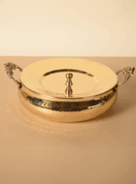 Made from pure brass, this serving piece doesn’t just enhance presentation—it also carries forward a legacy of mindful eating and durable design. Whether you’re serving kheer, halwa, dry fruits, or special prasad, this bowl elevates every offering with its golden warmth and heirloom appeal.