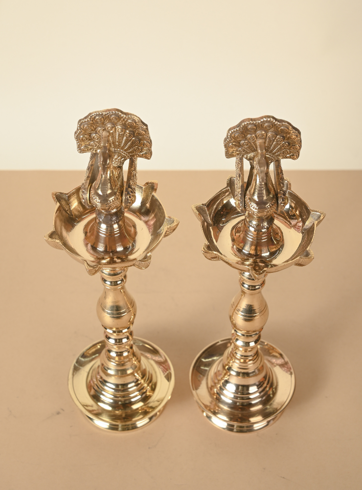 Brass Special Peacock Samai | Handmade Lantern Diya Samai | Peacok with feathers | Pair of 2