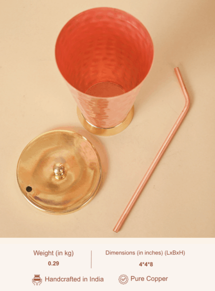 Copper Tumbler with straw | Tumbler with lid & Straw | Brass Lid and Base