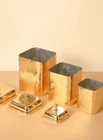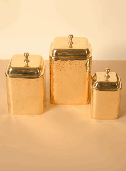 Brass Square Dabba with Knob | Hammered container for storage | Multipurpose storage box | Set of 3