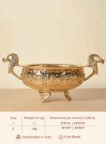 Add a touch of timeless charm to your living space with Pitaka’s Brass Urli, featuring beautifully crafted peacock-shaped handles that symbolize grace and beauty. Made from high-quality brass, this Urli is perfect for decorating with flowers, floating candles, or water, creating a serene and inviting ambiance.
