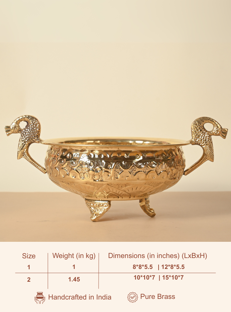 Brass Urli | Carving Peacock Urli | Decore Urli