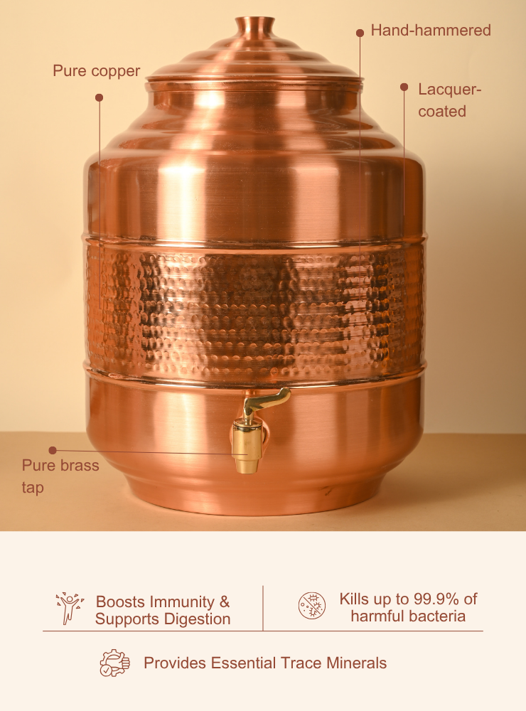 Copper Kumbh Matka | Pure Copper Water Dispenser | 12 Litres | Lacquer Coated for easy maintainance