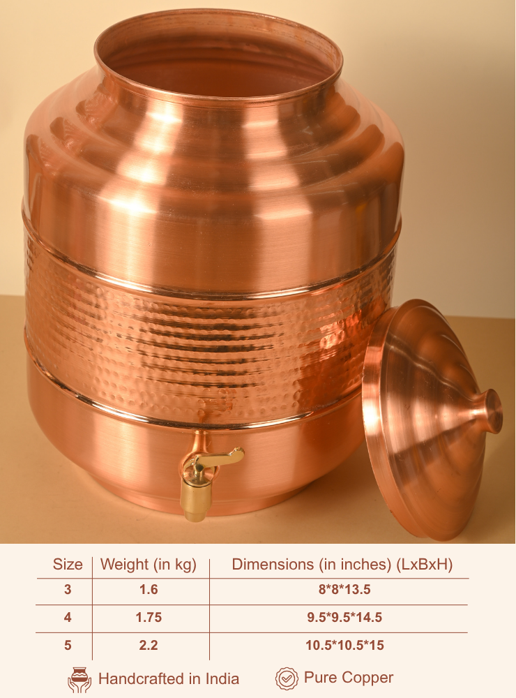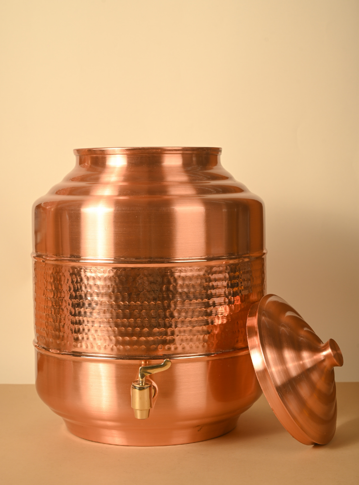 Copper Capsule Matka | Pure Copper Water Dispenser | Lacquer Coated for easy maintainance