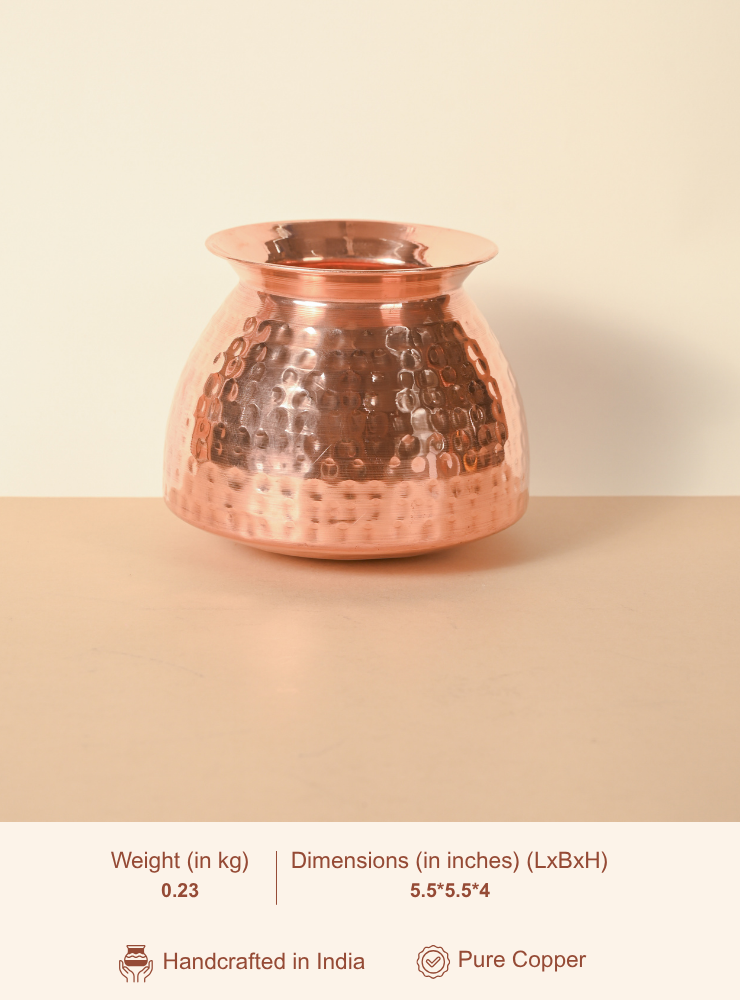 Home Drinkware Copper Lota | Copper Pooja Lota | Copper Water Jar | Hammered Lota