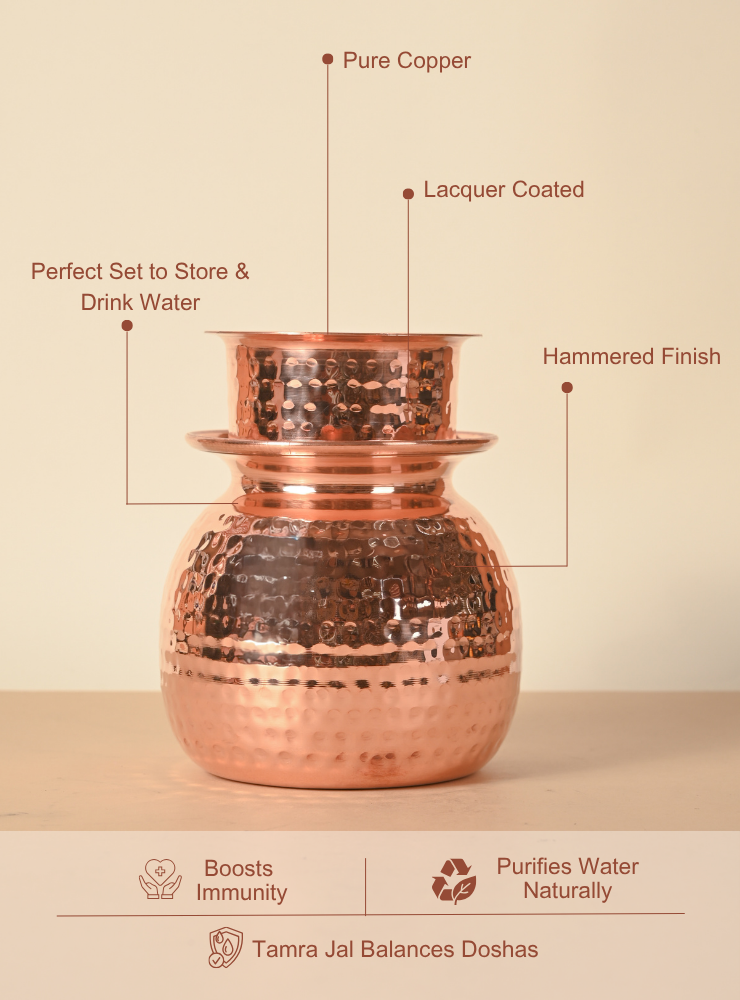 Copper Capsule Matka | Pure Copper Water Dispenser | Lacquer Coated for easy maintainance