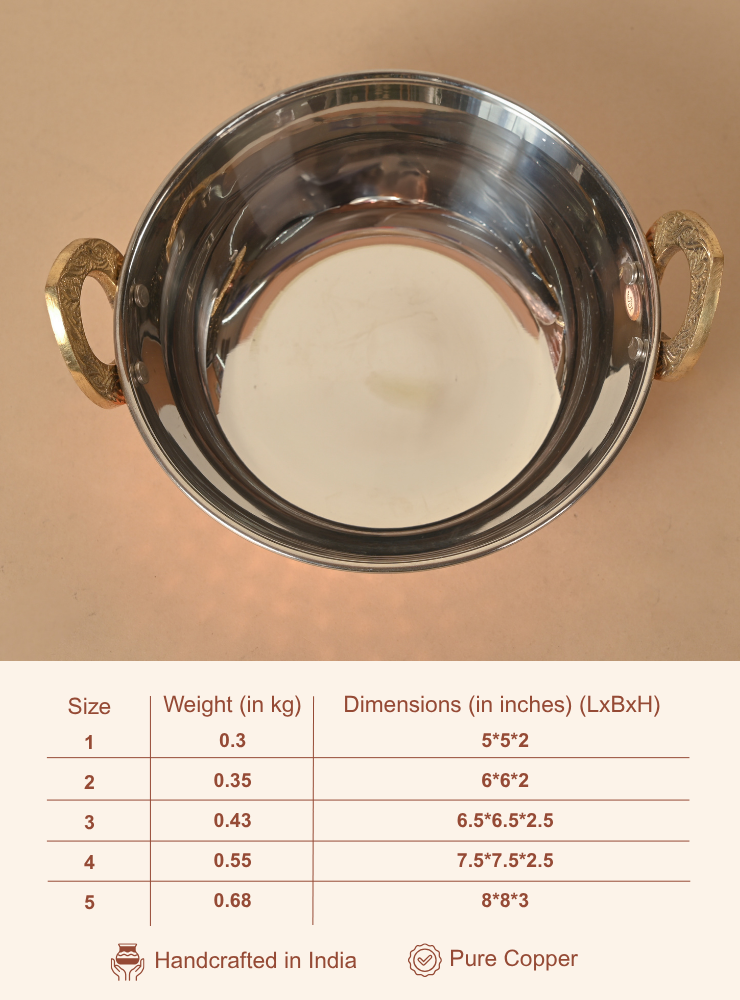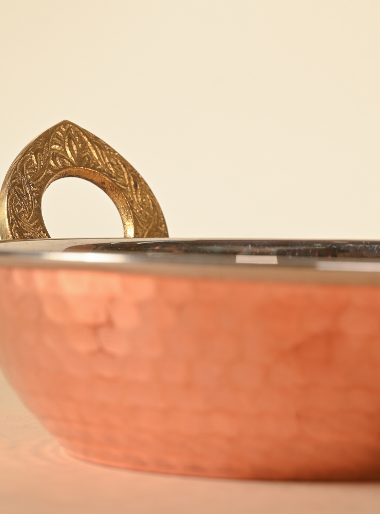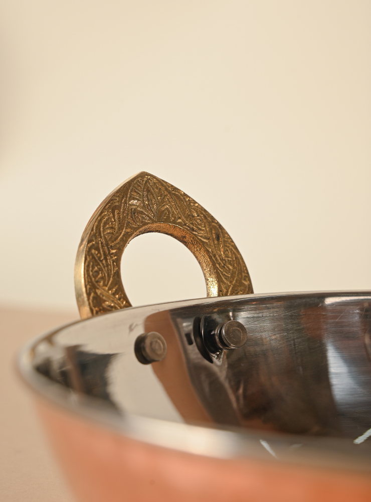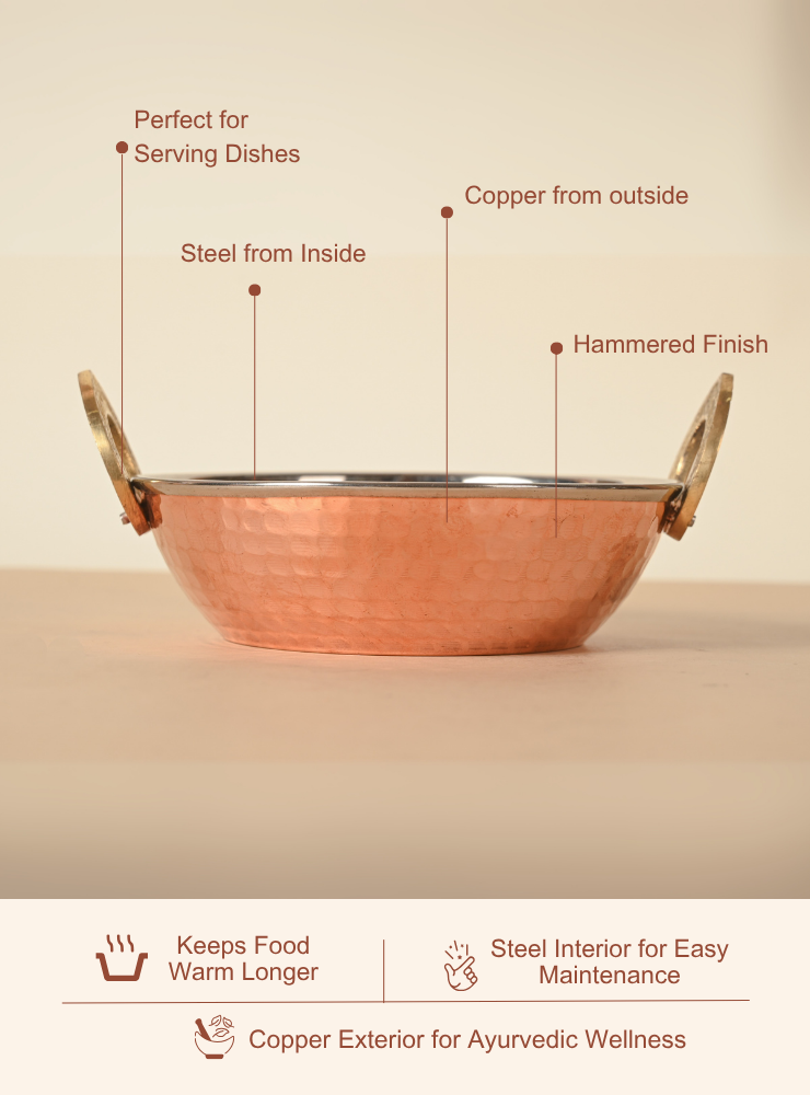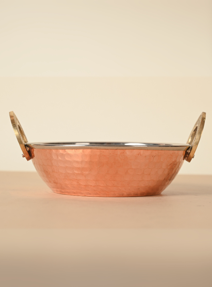 Copper Stainless Steel Kadhai | Hammered Serving Kadhai