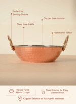 Elevate your everyday cooking and serving experience with Pitaka’s Hammered Copper Kadhai, featuring a pure copper exterior and a food-safe stainless steel interior. This thoughtfully crafted kadhai is perfect for both cooking and serving, combining aesthetic elegance with long-lasting performance.