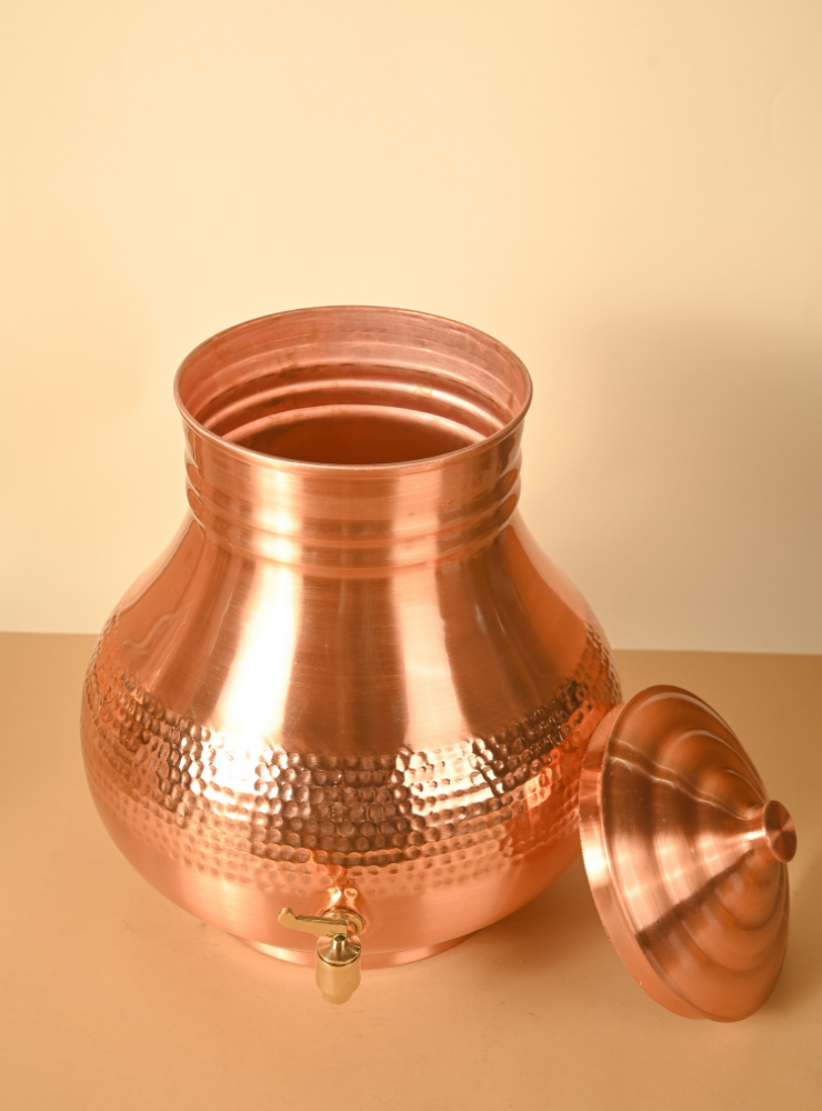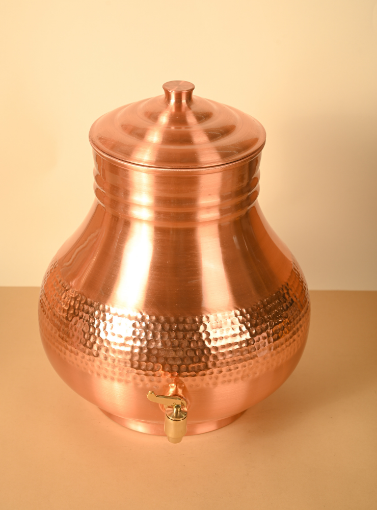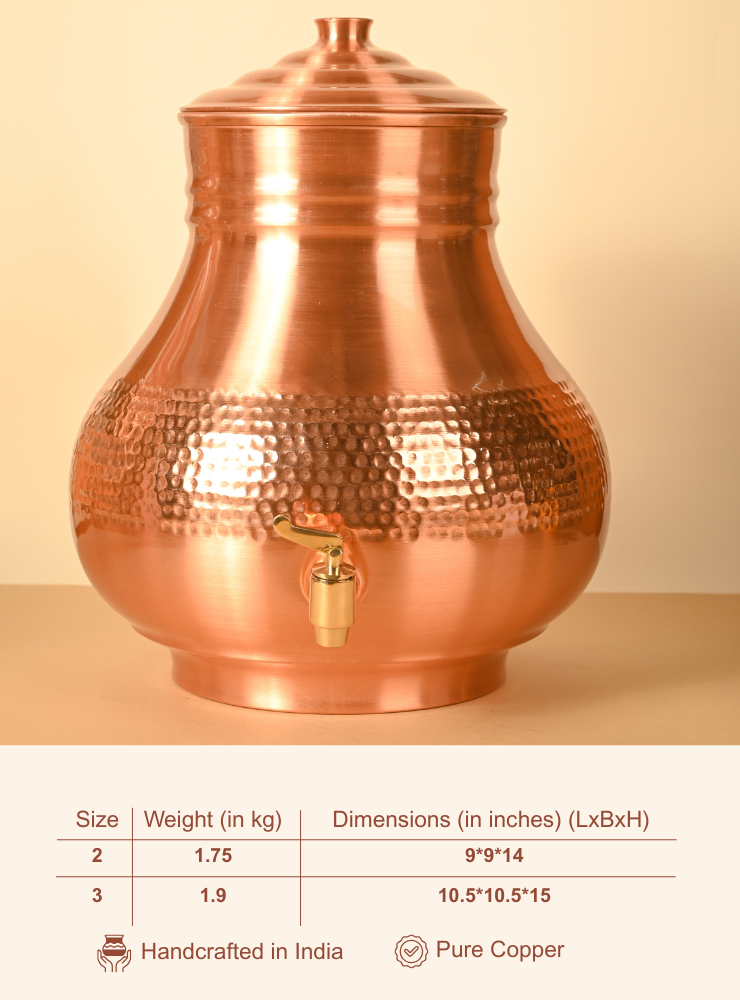 Copper Jal Matka | Pure Copper Water Dispenser | 12 Litres | Lacquer Coated for easy maintainance