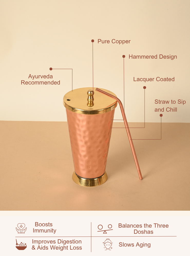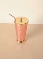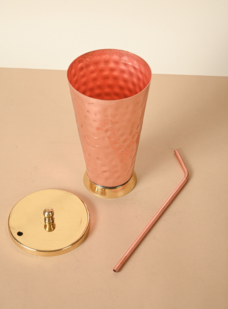 Copper Tumbler with straw | Tumbler with lid & Straw | Brass Lid and Base