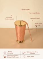 Paired with a reusable copper straw, it’s perfect for sipping plain water throughout the day—especially when stored overnight for maximum Ayurvedic benefits. With its sleek finish and health-enhancing properties, this set is ideal for those embracing conscious living with a modern twist.