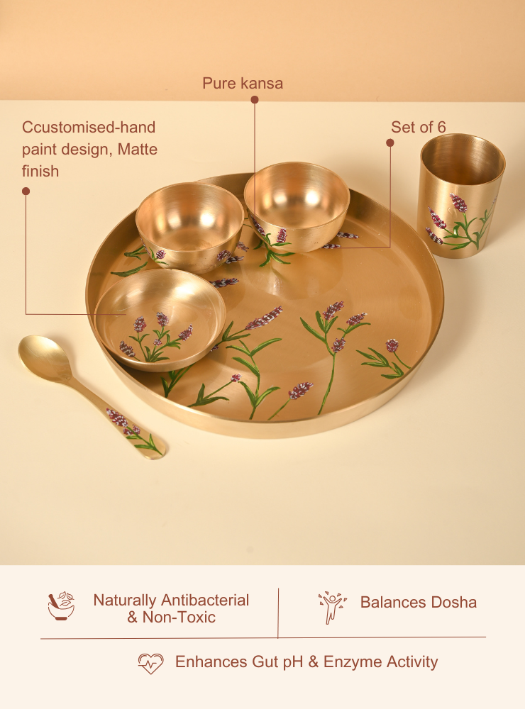 Kansa Dinner Set | 6 pieces designer set | Personalised Set of 6 | Pure Kansa Set