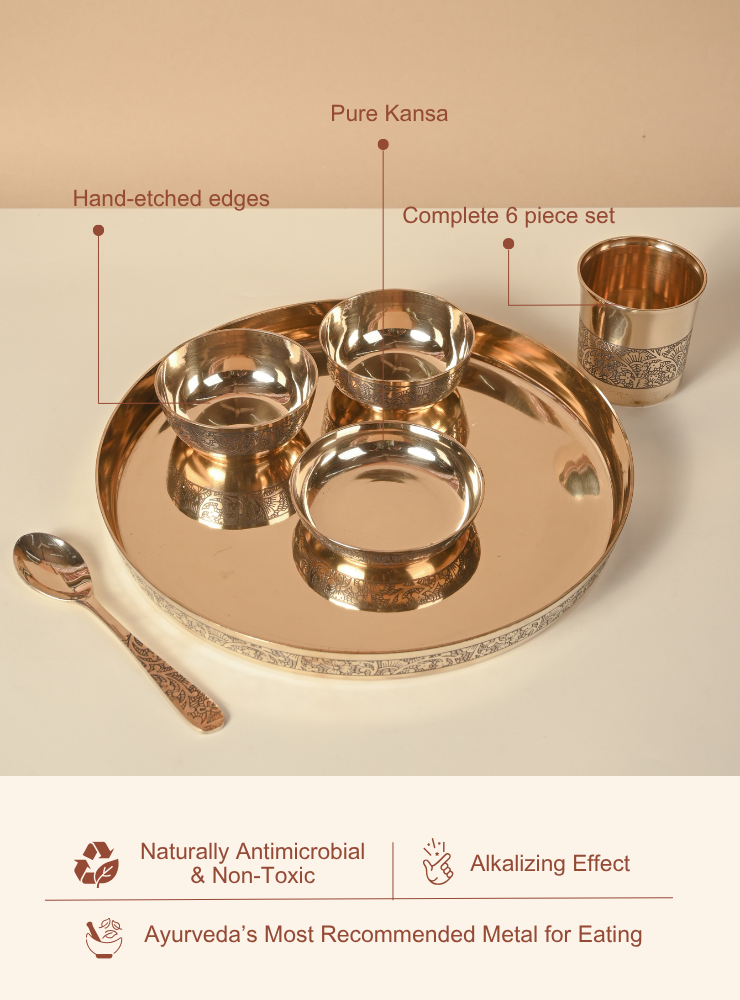 Kansa Dinner Set | Matte 6 pieces set | Pure Kansa Set